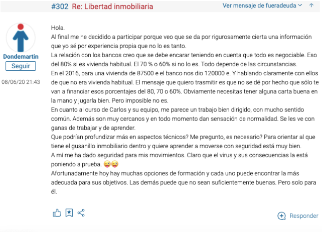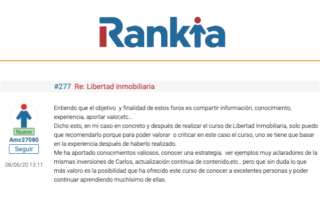 Para ser sincero, me sorprendió la cantidad de casos de éxito. Muchos exalumnos han comprado sus primeros pisos y han empezado a hacer crecer su patrimonio inmobiliario. Puedes ver varios testimonios en los enlaces que te dejo.